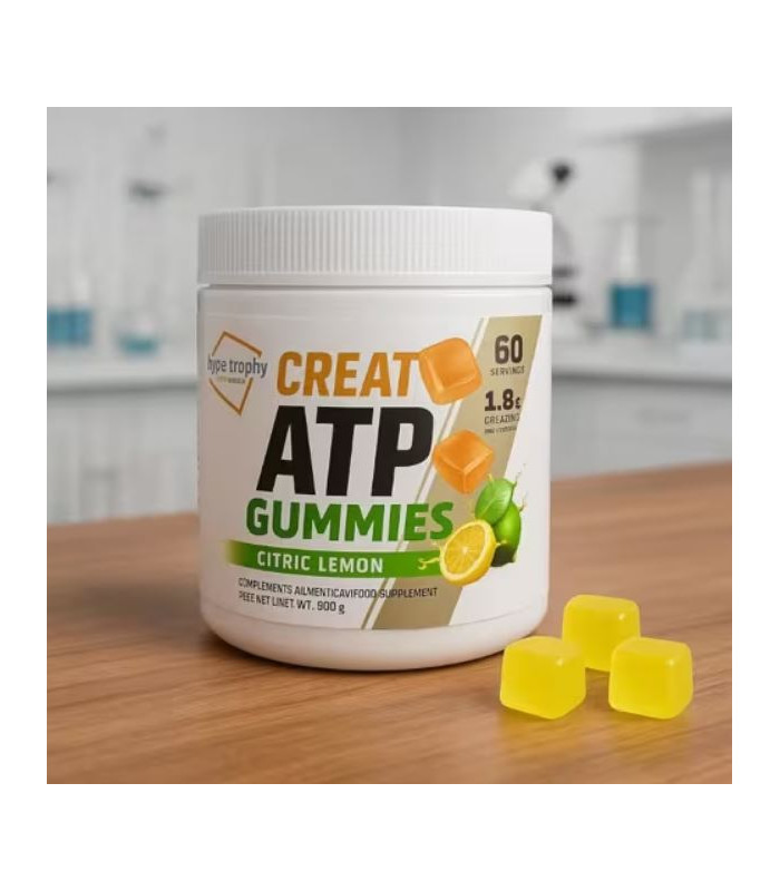 Monohidrato de creatina (malla 200) jarabe de glucosa, sacarosa, agua purificada, glicerol, pectina, citrato trisódico dihidratado, ácido cítrico monohidratado, fosfato tricálcico, sabor a limón natural 2, preparación de agente de glaseado (aceite de coco 2 - 10 % cera de carnauba e903), sabor a limón natural 1, preparación de curcumina (incluye 13 % de curcumina e100.
